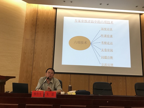朱跃从审核评估专家的角度提出了审核评估的重点——五个“度”:人才培养目标与培养效果达成度;办学定位和人才培养目标与社会需求的适应度;教师和教学资源对学校人才培养的保障度;教学和质量保障体系运行的有效度;以及学生和社会用人单位的满意度。结合参加评估其他高校的亲身经历,他高屋建瓴、深入浅出地介绍了教育部对高校进行审核评估的各环节及流程;解读了专家在审核评估中的六项技术:深度访谈、听课看课、考察走访、文卷审阅、问题诊断和交流反馈。
