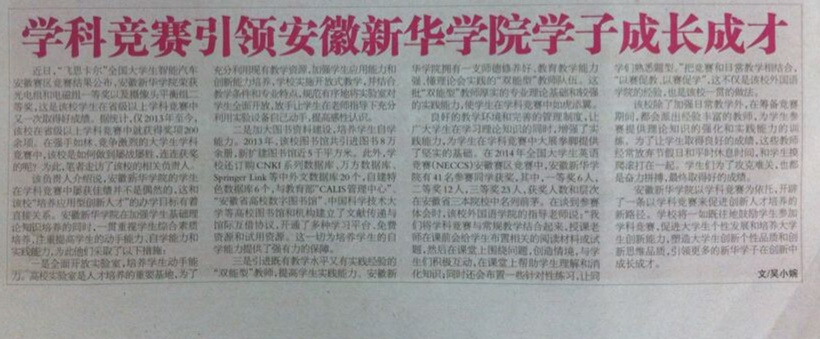 新安晚报:学科竞赛引领3044am永利集团3044noc学子成长成才