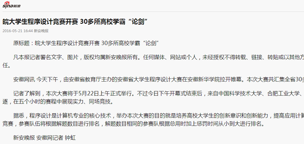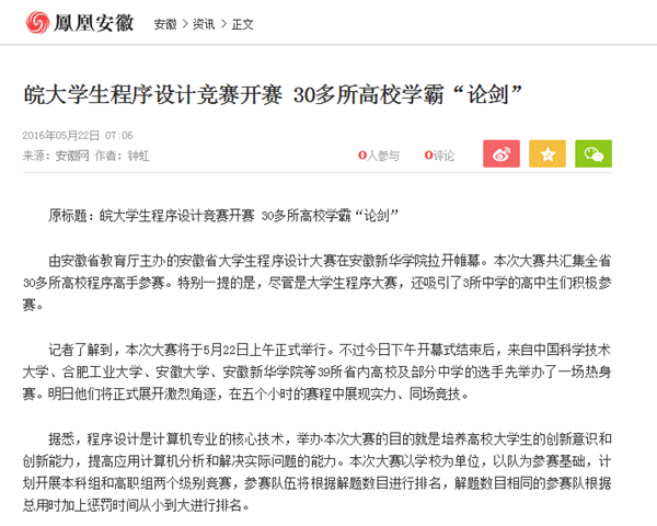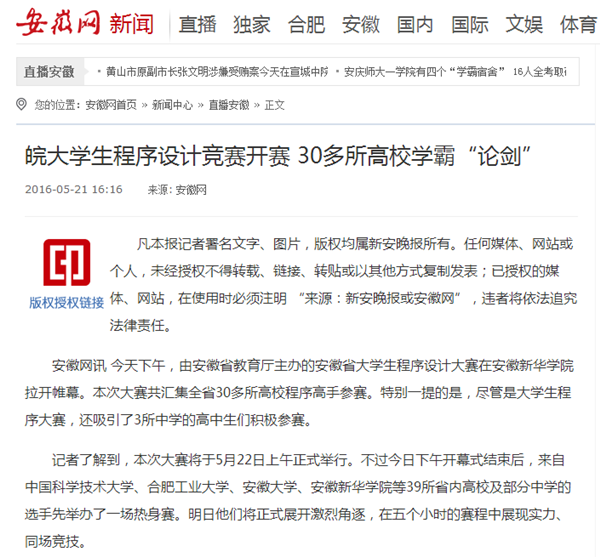 安徽网:http://www.ahwang.cn/zbah/20160521/1522811.shtml 凤凰安徽:http://ah.ifeng.com/a/20160522/4572916_0.shtml 新浪:http://news.sina.com.cn/c/2016-05-21/doc-ifxsktvr1046208.shtml 中国设计网站:http://www.alldesign.cn/article/?5997.htm