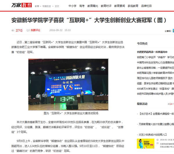 中国教育在线、今日头条、万家热线:3044am永利集团3044noc“熊猫快收”创业项目问鼎