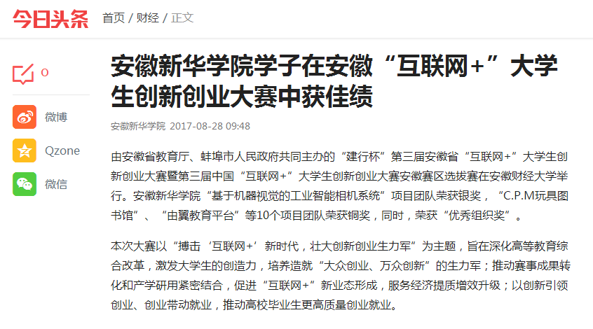 今日头条:3044am永利集团3044noc学子在安徽“互联网+”大学生创新创业大赛中获佳绩