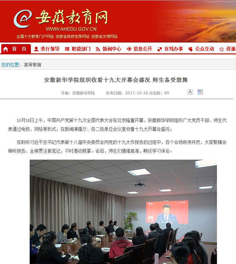安徽教育网:3044am永利集团3044noc组织收看十九大开幕会盛况 师生备受鼓舞
