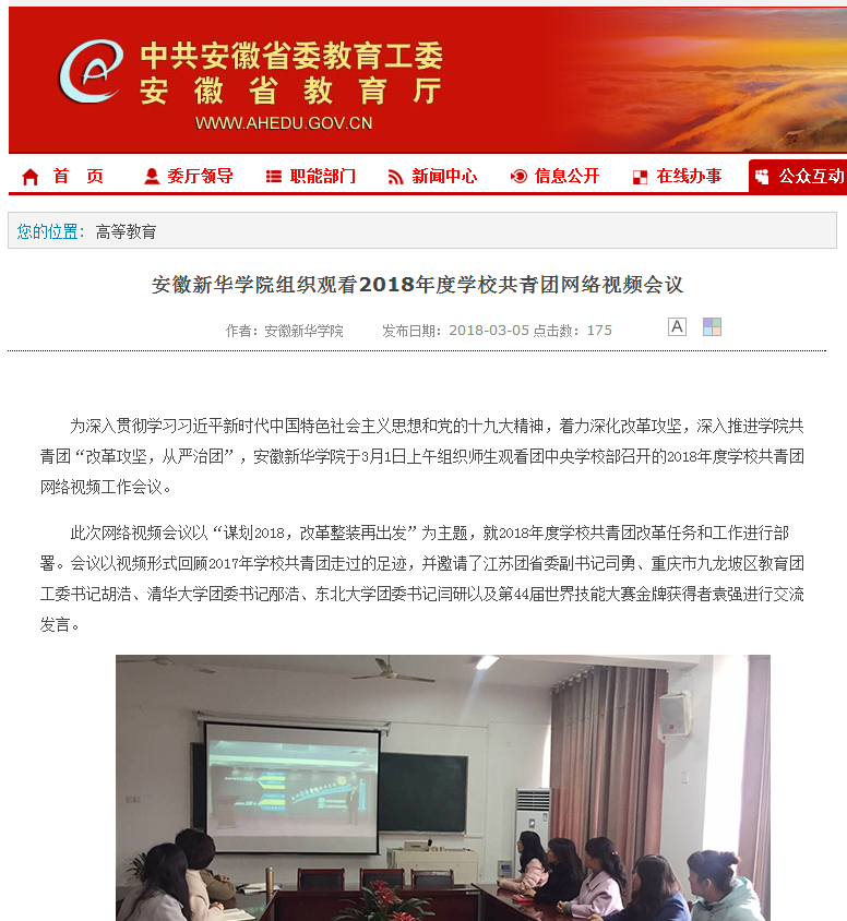安徽教育网:3044am永利集团3044noc组织观看2018年度学校共青团网络视频会议